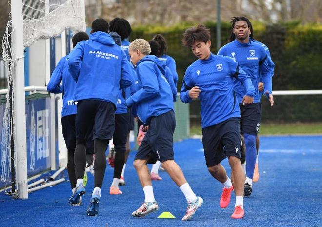 1月14日,魏祥鑫(前右)在欧塞尔预备队训练中。发