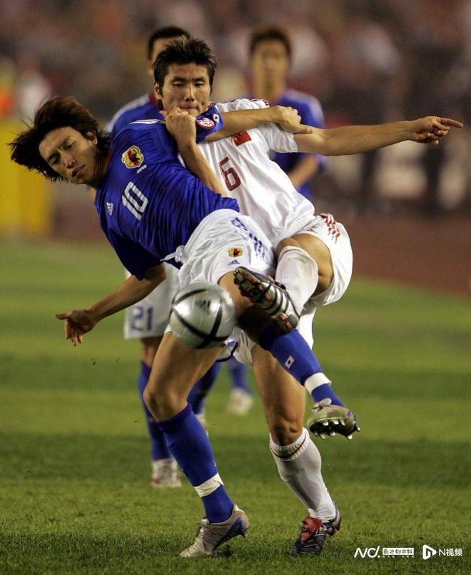 2004年8月7日,亚洲杯决赛,中国队邵佳一与日本队中村俊辅对抗。IC图片